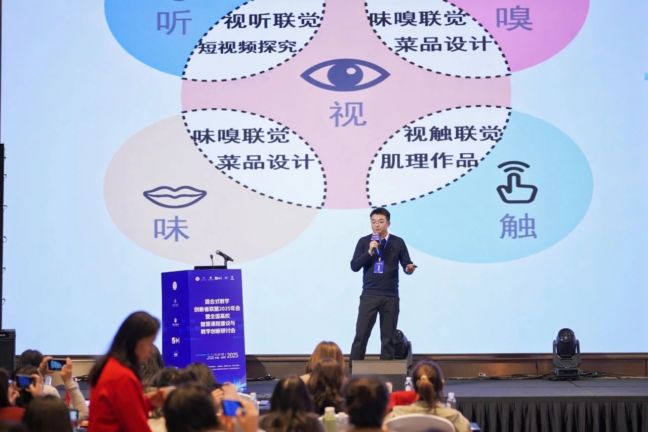 在教学创新大赛分论坛的讲台上,云南工商学院建筑与设计学院院长陈世光——第四届全国高校教师教学创新大赛一等奖获得者,带来了一场题为“唤醒创意:多模态教学如何重塑设计教育的‘感官基因’”的精彩分享。
