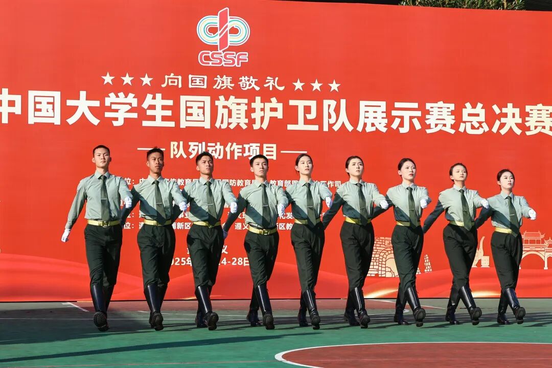 2025年中国大学生国旗护卫队展示赛全国总决赛由中国学生体育联合会主办,中宣部宣传教育局(全民国防教育局)、教育部思想政治工作司指导。历经西部、南部等多赛区激烈角逐,来自北京航空航天大学、同济大学、西北工业大学、兰州大学等58所高校的78支顶尖队伍、1400余名队员齐聚遵义市奥体中心,展开为期五天的巅峰对决。