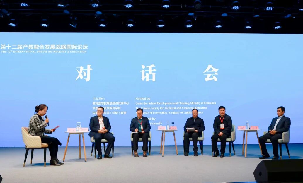 校长助理张健主持圆桌研讨环节,多位高校负责人就产教融合生态交换建设性意见