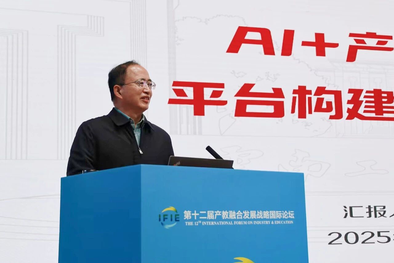 蒋永文校长在题为《“AI+产教融合”的平台构建与模式创新——数据驱动下的高等教育科学规划新路径》的主旨报告中系统阐释学校“AI+三三八”模式