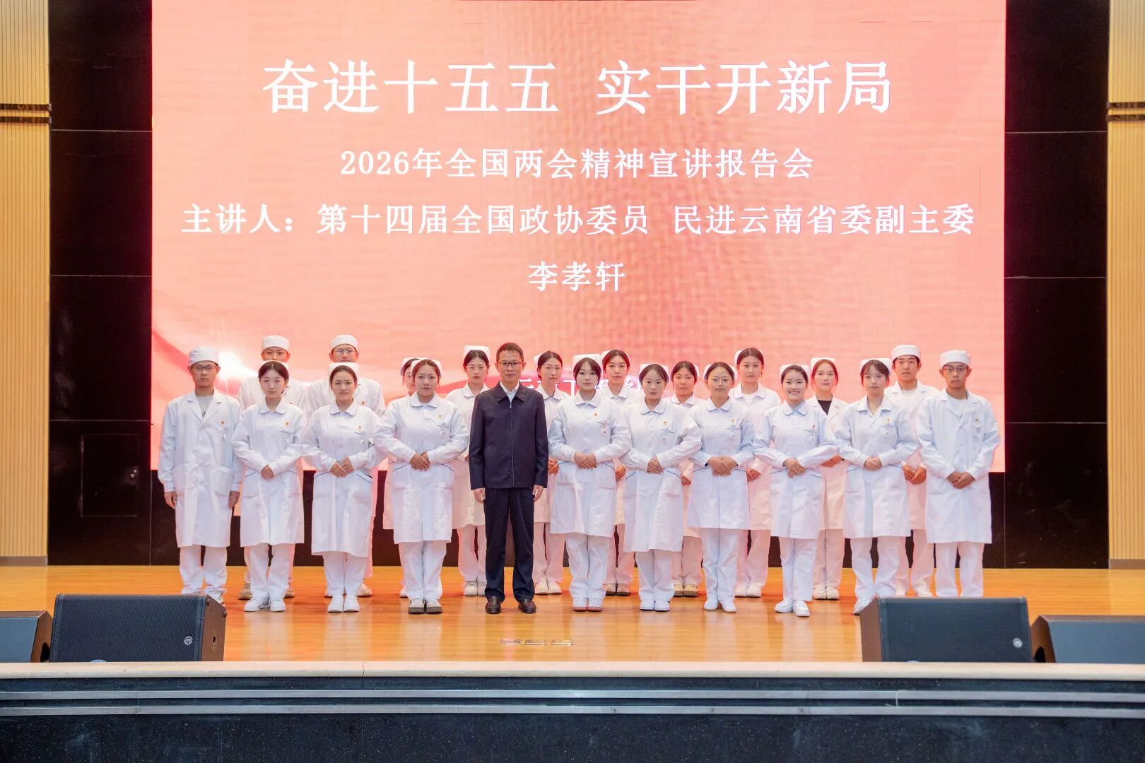 3月13日上午,云南工商学院举行全国两会精神宣讲报告会。第十四届全国政协委员、民进云南省委副主委、学校执行校长李孝轩到校进行主题宣讲。学校党政领导班子、校属各单位负责人、各基层党组织及团总支书记、民进云南工商学院总支委员会会员、党外知识分子及各民主党派代表、师生代表参加学习。宣讲会由党委书记李国琼主持。