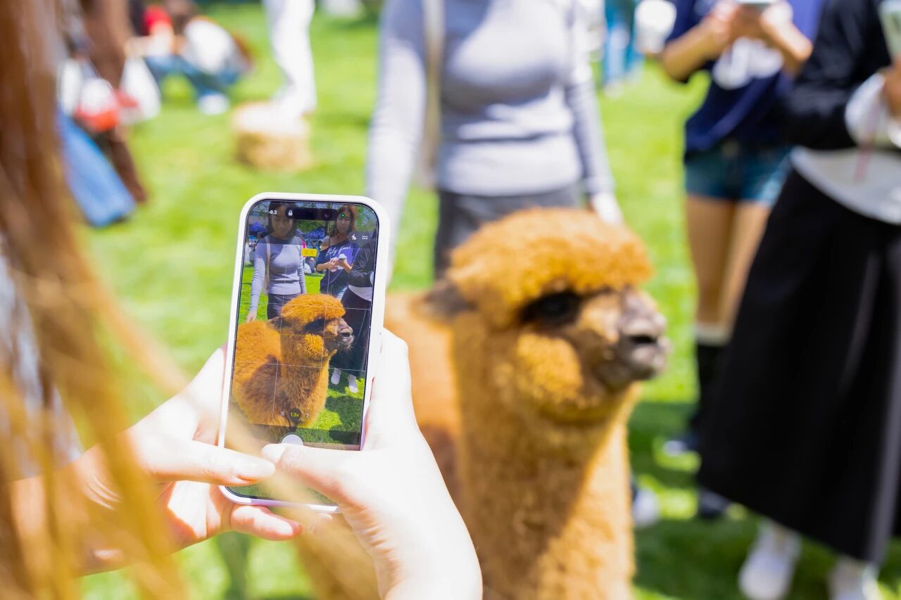 羊驼的毛软软的,小浣熊的爪子搭在手心痒痒的,狐獴站起来的样子像极了好奇的小朋友……20余只萌宠“空降”校园,把平日里藏在心里的压力,悄悄融化。