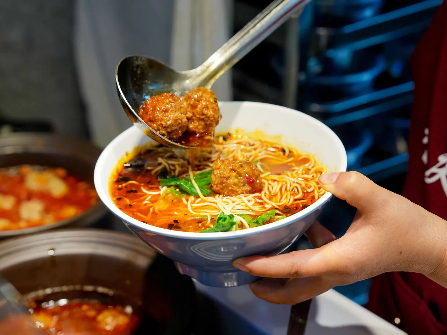 她本想单点一份狮子头当晚餐,却没想到,档口的阿姨误以为她点错了单,担心她一份狮子头吃不饱,便悄悄为她添上了一碗面。这位阿姨名叫马其分。重庆小面自2019年进驻云南工商学院三期食堂,今年已是第七个年头。七年来,她见过太多孩子匆忙中点错单、忘了点主食的模样。
