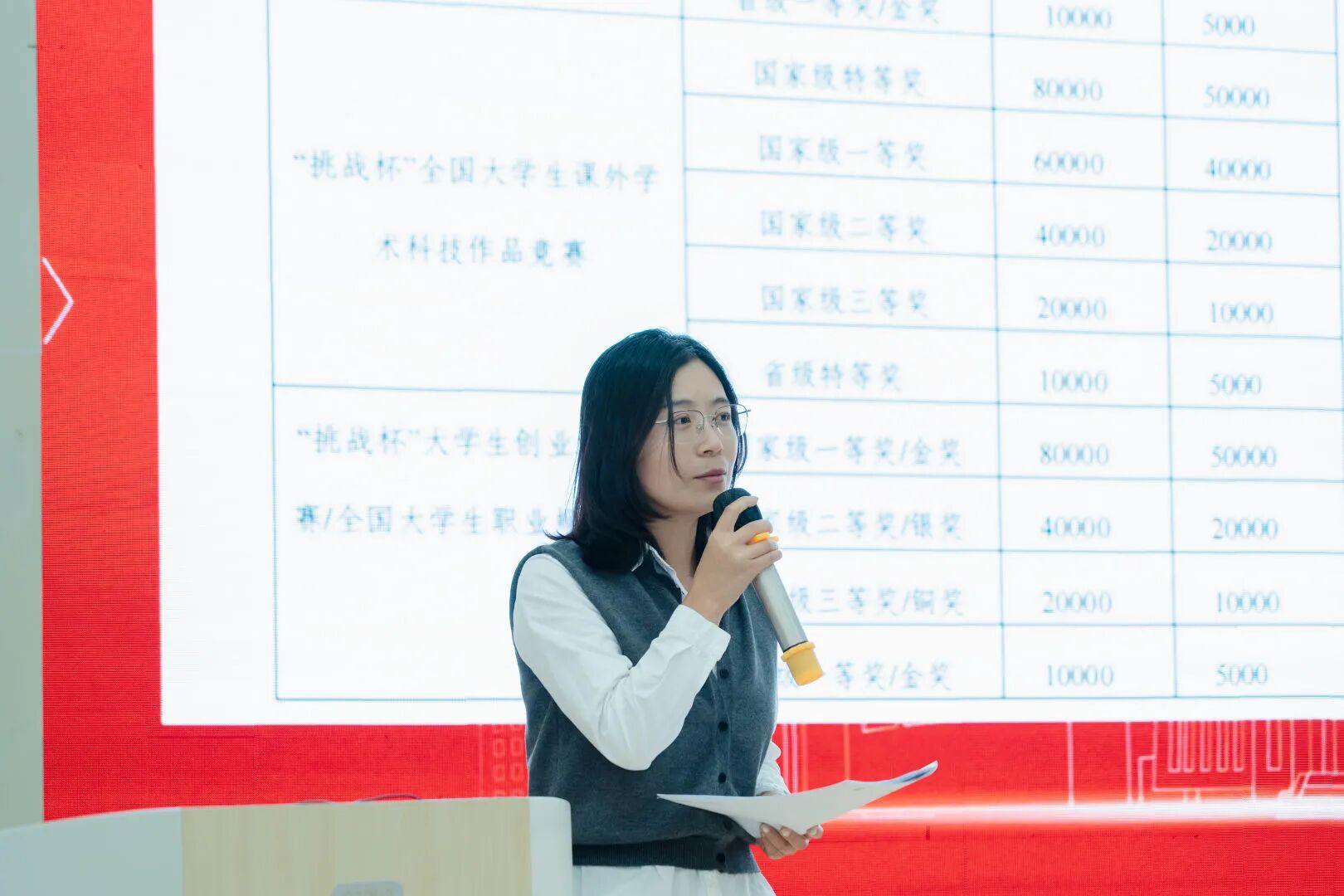她强调,学校重磅发布四项重点赛事支持与奖励方案,从经费保障、专家指导、资源对接、激励奖励等方面为参赛团队提供全方位支持。其中,国家级金奖教师团队最高可获250000元奖励,学生团队最高可获50000元奖励,旨在为师生参赛保驾护航,鼓励更多学子投身创新实践。