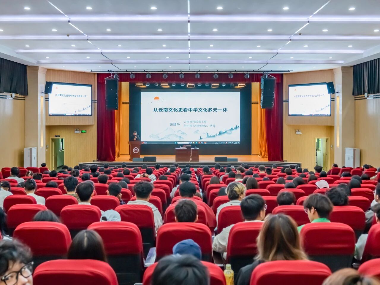 近日,云岭大讲堂・云工商讲坛第十八讲在云南工商学院新报告厅隆重开讲。本次讲坛特邀云南省社会科学界联合会原主席、华中师范大学特聘教授、博士生导师范建华作主题报告,以《从云南文化史看中华文化多元一体》为核心,系统梳理云南数千年文明演进脉络,全方位阐释云南各民族交往交流交融的历史进程,深刻揭示中华文化多元一体格局的历史逻辑与现实意义。