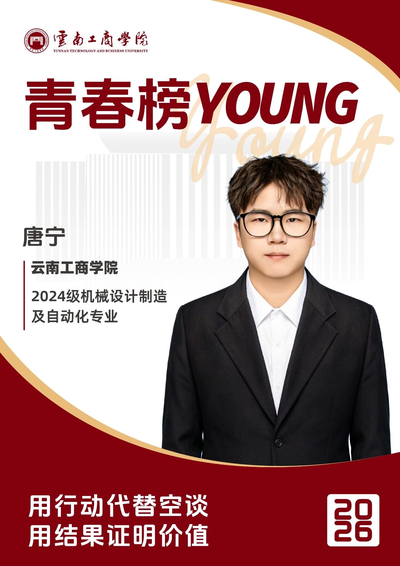 唐宁,2024年专升本考入云南工商学院机械设计制造及其自动化专业,2026年毕业前拿到京东“新锐之星”Offer,入职后凭借责任心担任京东大理下关集配站预备站长。